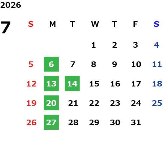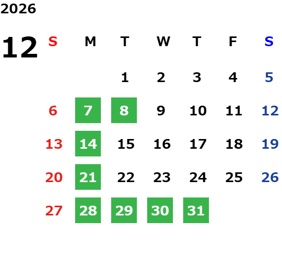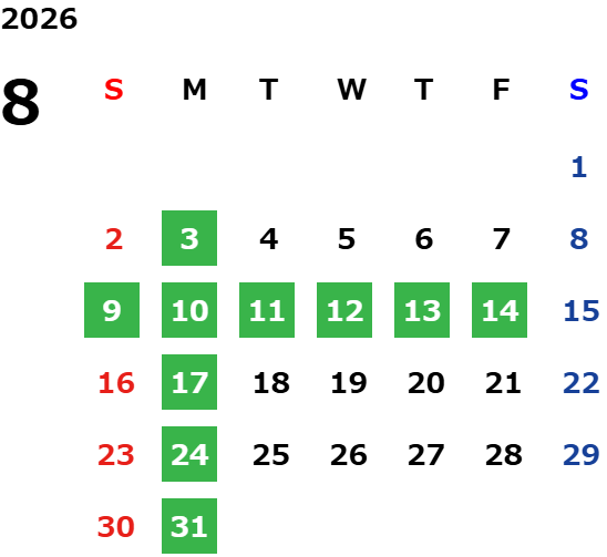 ※夏季休業・年末年始休業は営業カレンダーでご確認ください。